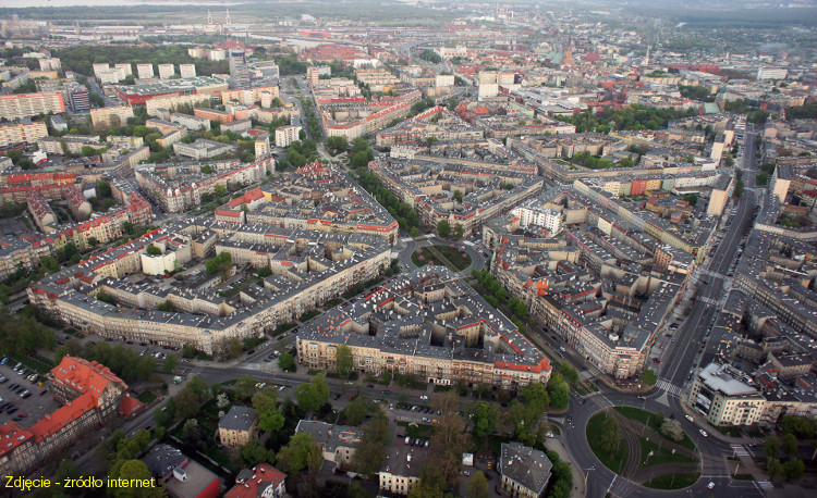 Układ urbanistyczny centrum miasta. Jest on rezultatem przebudowy przeprowadzonej po wyburzeniu murów miejskich w latach 70. XIX w. Kompleksowa przebudowa śródmieścia prowadzona przez nadburmistrza Hermanna Hakena trwała od 1878 do 1907 r. Plac Grunwaldzki i gwiaździsty układ ulic Szczecina, były wzorowane na Paryskim promienistym układzie ulic. Choć Georges Haussmann, urbanista z Paryża, nie projektował układu Szczecińskich ulic to bez wątpienia miał on pośredni wpływ na ich wygląd, będąc inspiracją dla urbanistów wielu miast XIX wiecznej Europy.