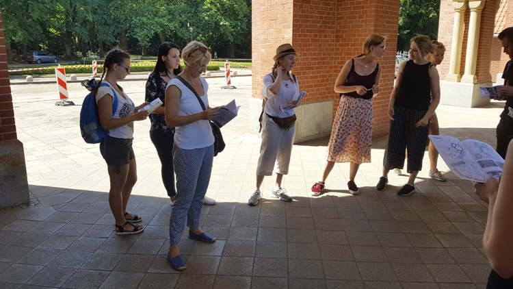 Studenci pod opieką dr inż. arch. Agnieszki Wilkaniec i dr inż. Michała Krzyżaniaka przygotowali materiały dotyczące najciekawszych obiektów architektonicznych, założeń urbanistycznych i terenów zieleni w Szczecinie. Prezentację w terenie prowadziły studentki: Oktawia Mikuła, Anna Potok oraz Lidia Szuster.